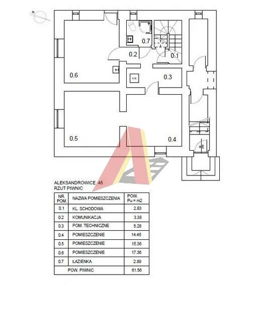 Parter: - Kl. Schodowa, Pom. Techniczne , 3 pokoje (z możliwością adaptacji pod kuchnię) , Łazienka. Łączna powierzchnia: 61,56 m2